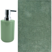 Badkamer droogloopmat van kortharig polyester/katoen met bijpassend zeeppompje set. Serie: Napoli. Kleur: groen. Voor de wasbak of het bad, comfortabeler bij het uitstappen. Afmetingen: 45 x 70 cm…