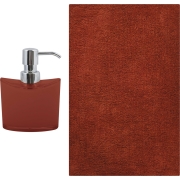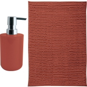 Badkamer droogloopmat/tapijtje met kortharige noppen van microfibre met bijpassende kleur zeeppompje. Serie: Bologna. Kleur: terracotta. Voor de wasbak of het bad, comfortabeler bij het uitstappen…