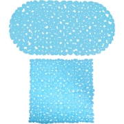 Pvc badkamer douche/bad anti-slip matten set van 2x stuks in 2 formaten. Kleur: lichtblauw. Voor in de douche en voor de wasbak/het bad of voor bij het uitstappen. Afmetingen 53 x 53 cm en 39 x 99…