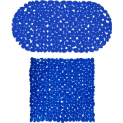 Pvc badkamer douche/bad anti-slip matten set van 2x stuks in 2 formaten. Kleur: donkerblauw. Voor in de douche en voor de wasbak/het bad of voor bij het uitstappen. Afmetingen 53 x 53 cm en 39 x…