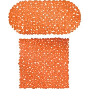 Pvc badkamer douche/bad anti-slip matten set van 2x stuks in 2 formaten. Kleur: oranje. Voor in de douche en voor de wasbak/het bad of voor bij het uitstappen. Afmetingen 53 x 53 cm en 35 x 68.…
