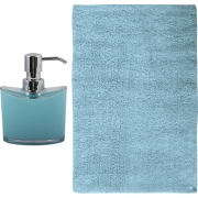 Badkamer droogloopmat/tapijtje met kortharige noppen van polyester/katoen met bijpassende kleur zeeppompje. Serie: Sienna. Kleur: lichtblauw. Voor de wasbak of het bad, comfortabeler bij het…