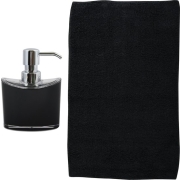 Badkamer droogloopmat/tapijtje met kortharige noppen van microfibre met bijpassende kleur zeeppompje. Serie: Bologna. Kleur: zwart. Voor de wasbak of het bad, comfortabeler bij het uitstappen.…
