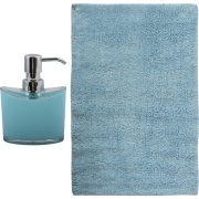 Badkamer droogloopmat/tapijtje met kortharige noppen van polyester/katoen met bijpassende kleur zeeppompje. Serie: Sienna. Kleur: lichtblauw. Voor de wasbak of het bad, comfortabeler bij het…