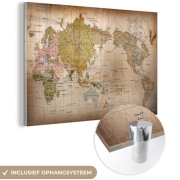 MuchoWow® Glasschilderij - Wereldkaart - Vintage - Papyrus - Kids - Jongen - Meisje - 120x80 cm - Acrylglas Schilderijen - Foto op Glas