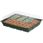 Kweekkas van soepele kunststof en transparant deksel voor zien van 4 trays gemaakt van houtvezel met elk 12 vakjes - H13 x 43 x 32,5 cm.…