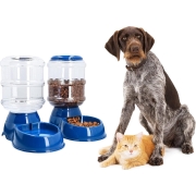 Automatische Voerbak en Waterbak - 3,8 l Voer en Water Dispenserflessen voor Hond, Kat, Puppy, Kitten - Set van 2 - Donkerblauw