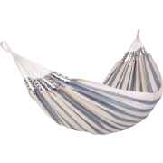 De Cool Summer Sky RuimDe Cool Summer Sky, een moderne, katoenen hangmat wit met leisteenblauwe strepen.De hangmat Cool Summer Ruim heeft een doek van 130 cm breed en 230 cm lang…