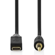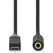 Nedis CCBW65960AT10 Usb-c™ Adapter Usb 2.0 Usb-c™ Male 3,5 Mm Female 1.00 M Rond Verguld Pvc Zwart Doos