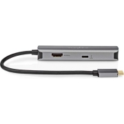 Nedis USB Multi-Port Adapter - USB 3.2 Gen 1 - USB-C Male - HDMI Output / USB-A Female / USB-C Female - 5 Gbps - 0.10 m - Rond - Vernikkeld - PVC - Grijs - Doos