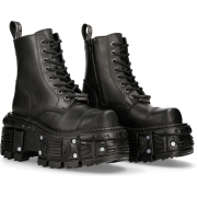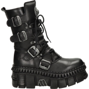 New Rock unisex zwart lederen gevechtsplatformlaarzen - TANK083-C1