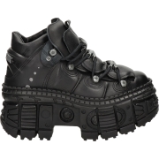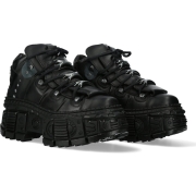 New Rock metalen enkel zwarte leren laarzen-WALL106-S12