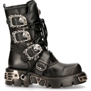 New Rock metalen enkel zwarte leren laarzen-WALL285-S2