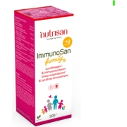 Nutrisan Immunosan familie Plantaardige siroop voor het hele gezin op basis van acaciahoning en aalbessensapconcentraat. - Vitamine C draagt bij tot de normale werking van…