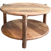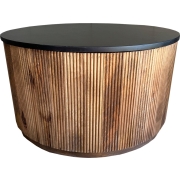 Deze salontafel is een prachtige ronde salontafel van mangohout in een walnoot kleur. De ronde tafel heeft een diameter van 75 cm. Naast het ronde mango blad heeft salontafel een onderblad bekleed…