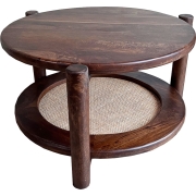 Old Inn - Mango salontafel walnoot met rotan rond 65 cm