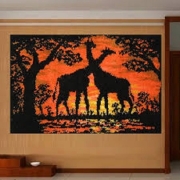 Knooptapijt/Vloerkleed - Smyrna tapijt/Vloerkleed - Giraffe onder de zonsondergang