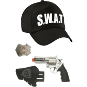 Politie/SWAT team verkleed cap/pet blauw met pistool/holster/badge voor kinderen -