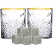 Luxe whiskyglazen set 4x stuks 350 ml met 9x whisky ijsblokstenen -