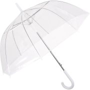 Transparante koepelparaplu van Perletti Deze lange transparante koepelparaplu heeft een gebogen witte handvat men een witte punt. De paraplu is uitgerust met een…