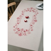 Voorbedrukt tafelkleed rode bloemen van Permin 58-8636R incl garen afm 140x230cm