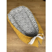 Dit leuke babynestje wordt gemaakt van oker wafelkatoen in combinatie met een witte katoenen stof met een panter print. Dit babynestje past in elke kinderkamer en is geschikt voor pasgeboren baby's…
