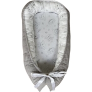 Een lief babynestje in de kleur grijs. Dit nestje wordt gemaakt van lichtgrijs wafelkatoen in combinatie met wit katoen met een lichtgrijze panda print. Het nestje sluit met een satijnen lint.…
