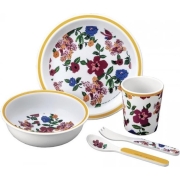 5 dlg kinder eet set van melamine schaaltje/ bordje/ bestek 2 dlg/ bekertje met bloemen…