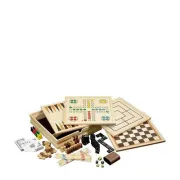 Dit is een houten speelset, met verschillende klassieke spellen. Verpakt in een dennen houten box zijn twee dubbelzijdig bedrukte spelborden, en alle benodigde toebehoren.Schaken, dammen, backgammon…