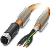 Powerkabel, 4-polig, PUR halogeenvrij, oranje RAL 2003, afgeschermd (Advanced Shielding Technology), vrij kabeluiteinde, op bus recht M12, S-gepolariseerd, kabellengte: 3 m, voor wisselstroom tot 12…