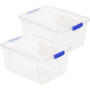 4x stuks opslagboxen/bakken/organizers met deksel 16 liter 40 x 30 x 21 cm transparant plastic. Opbergbakken met deksel welke is voorzien van sluitclips. Handig voor het opbergen van alle spullen…