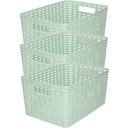 3x stuks rotan gevlochten opbergmand/opbergbox kunststof - Mintgroen - 22 x 33 x 16 cm -
