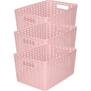 3x stuks rotan gevlochten opbergmand/opbergbox kunststof - Oud roze - 22 x 33 x 16 cm -