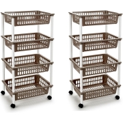 2x stuks taupe opberg trolley/roltafel met 4 manden 85 cm. Handige roltafel/opberg trolley met manden om diverse spullen in op te bergen, zoals tijdschriften/kranten, groenten/fruit, opladers/…