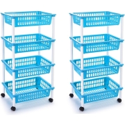 2x stuks lichtblauwe opberg trolley/roltafel met 4 manden 85 cm. Handige roltafel/opberg trolley met manden om diverse spullen in op te bergen, zoals tijdschriften/kranten, groenten/fruit,…