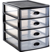 Bureau organizer - 4 lades - zwart/transparant - 27 x 35 x 35.5 cm - Ladeblok -