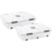 Plasticforte Opslagbak/box met deksel - 2x - 41L - 73 x 55 x 16 cm - transparant - met wielen -