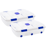 2x opslagbakken / Opslagboxen organizers op wielen met deksel met een inhoud van 41 liter. Transparante opbergbakken met deksel welke is voorzien van sluitclips. Handig voor het opbergen van…