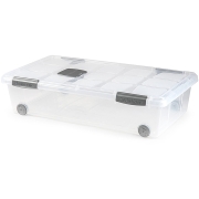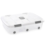 Opslagbakken / Opslagboxen organizers op wielen met deksel met een inhoud van 56 liter. Transparante opbergbakken met deksel welke is voorzien van sluitclips. Handig voor het opbergen van spullen…