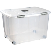 Opslagbakken / Opslagboxen organizers op wielen met deksel met een inhoud van 130 liter. Transparante opbergbakken met deksel welke is voorzien van sluitclips. Handig voor het opbergen van spullen…