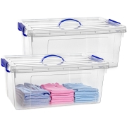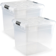 2x opslagbox/kist met zijklem deksel met een inhoud van 36 liter. De opslagbox / opbergbox is in de kleur transparant en is gemaakt van stevig kunststof. Afmetingen: 52 x 27 x 36 cm. Handige…