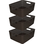 Opbergmand/kastmandje - 3x - 12 liter - bruin - geweven kunststof - 36 x 28 x 13 cm -