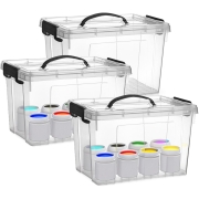 3x opslagbox/kist met zijklem deksel met inhoud van 12.5 liter. De opslagbox / opbergbox is in de kleur transparant grijs en is gemaakt van stevig kunststof. Met handige oppak hengsel aan de…