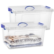 2x opslagbox/kist met zijklem deksel met inhoud van 39 liter. De opslagbox / opbergbox is in de kleur transparant blauw en is gemaakt van stevig kunststof. Met handige oppak hengsel aan de…