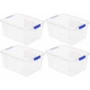 4x stuks Opslagbakken/organizers met deksel 35 liter 42 cm. Transparante opbergbakken met deksel welke is voorzien van blauwe sluitclips. Handig voor het opbergen van spulletjes. Inhoud: ca. 35…