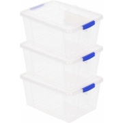 3x opslagbakken / Opslagboxen organizers op wielen met deksel met een inhoud van 41 liter. Transparante opbergbakken met deksel welke is voorzien van sluitclips. Handig voor het opbergen van…