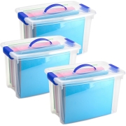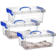 3x opslagbox/kist met zijklem deksel met inhoud van 12.5 liter. De opslagbox / opbergbox is in de kleur transparant blauw en is gemaakt van stevig kunststof. Met handige oppak hengsel aan de…