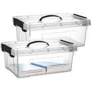 2x opslagbox/kist met zijklem deksel met inhoud van 12.5 liter. De opslagbox / opbergbox is in de kleur transparant grijs en is gemaakt van stevig kunststof. Met handige oppak hengsel aan de…