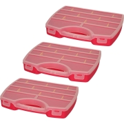 3x opbergkoffertje/opbergdoos/sorteerbox 13-vaks, gemaakt van kunststof, in de kleur roze. Deze handige kleine opberg vakjes sorteerdoos/koffer/box met een deksel en kliksluiting heeft totaal 13-…