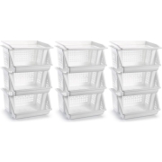 Opbergkrat - Pakket van 9x stuks - wit - 3 vakken - 62 cm - Stapelkratten - Stapelbare manden -